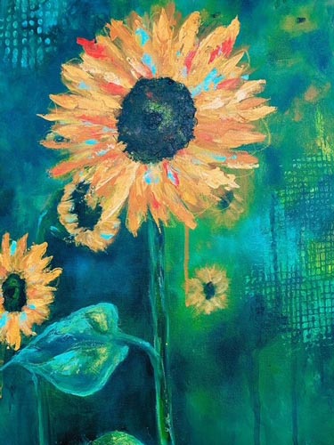 Michelle's subject matter includes loose, moody landscapes, expressive florals, textural abstract work with mark-making and depth, and work inspired by nature.